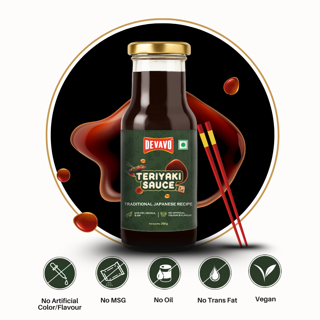 Experience the rich, umami taste of Japan with Devavo Teriyaki Sauce- a delicious fusion of classic ingredients like soya sauce, corn syrup, apple juice, and pineapple juice. This authentic Japanese-style sauce brings the perfect balance of sweet, salty, and tangy flavors to your kitchen. Whether you’re stir-frying vegetables, marinating tofu or meats, using it as a dip, or drizzling it over rice or noodles, this versatile sauce instantly elevates your meals. It pairs beautifully with all kinds of Asian cuisines, adding that restaurant-style flavor at home. Crafted with premium-quality ingredients, Devavo Teriyaki Sauce contains no artificial colors or flavors, no MSG, no oil, and no trans fat. It’s also 100% vegan, making it a clean and flavorful choice for conscious cooking. Bring home the taste of Japan – simple, delicious, and made with care.